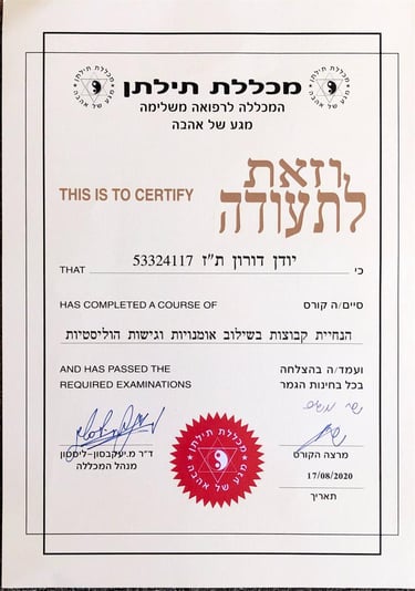 מפגשים פרונטליים באזור ירושלים. אפשרות למקומות נוספים כגון תל אביב- בתיאום מיוחד.