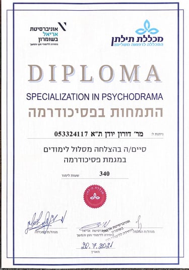 שילוב מקצועי: מאמן אישי מורשה לחיים ומנחה פסיכודרמה ליחידים ולקבוצות.